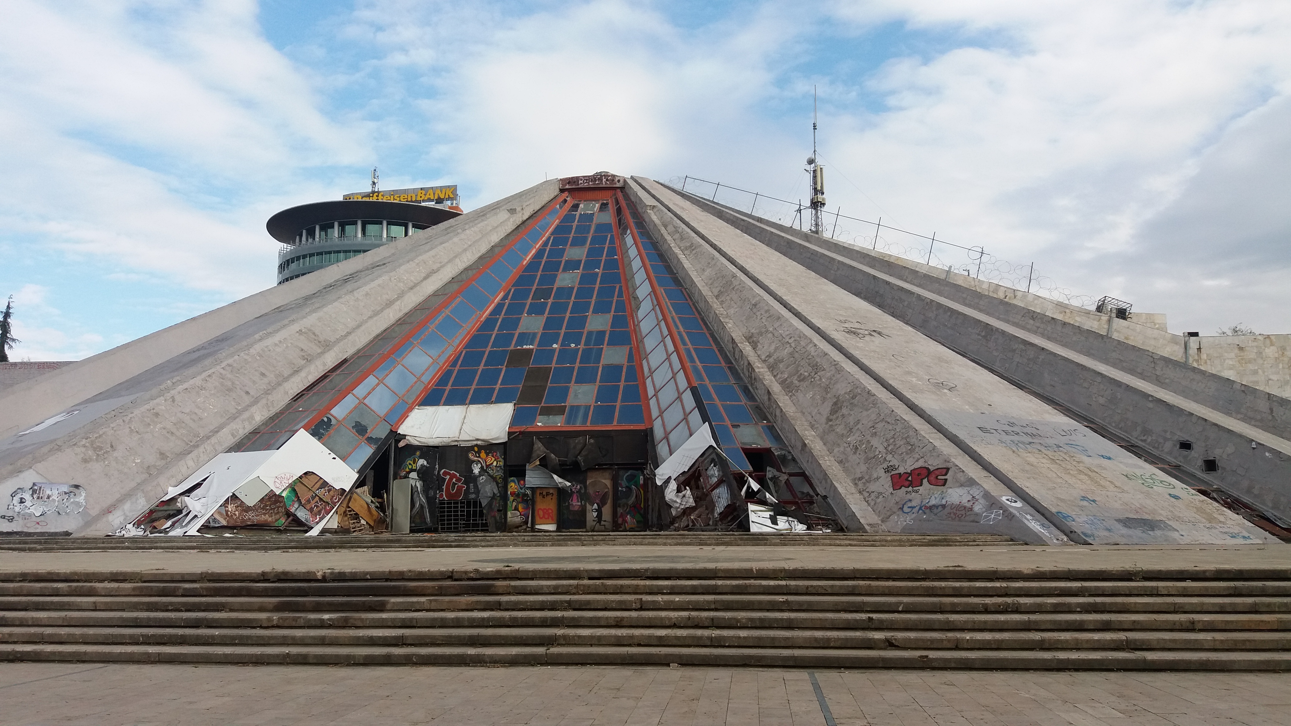 A marginally better trip a few kilometers in to Tirana central, we parked the car (didn’t look AT ALL dodgy mind) and strolled to the most bazaar point of interest I’ve ever witnessed. The Pyramida, that often tops Tirana’s top attraction lists, is located on the main boulevard between the main piazza and Mother Theresa Square. This concrete and glass monstrosity was originally built to honor some communist geezer but when shit hit the fan in 1991 it was turned in to a convention centre, once being used as a base for NATO during the Balkans war. Since then they can’t decide whether it’s best to do something useful with it or demolish it. Whilst I had every intention of climbing up to the top after 10 feet I thought better of it, although was a bit envious to see a half dozen Welshmen complete the climb. Instead we bumped in to yet more people from North Wales, and this gang actually remembered me from a previous trip.