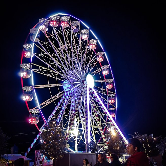 It wasn’t a bad idea. Although hobbling and walking very slowly, it wasn’t far to walk through the festive big wheel, carousel and picture opportunities and in to the City gate leading to a wander around town – the smallest in Europe.