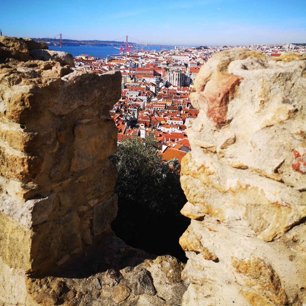 With not having any concrete plan for the day we weighed up our options for the day and decided to visit the Castle of St George. Not only did this tick the box of panoramic views to get our bearings, we could also catch the tram uphill most of the way. You may not know about the Lisbon tram system if you haven’t been before, but you soon realise it’s a tourist magnet. I knew to avoid peak times and we thought we were early enough to avoid large queues at stop one near our hotel, but still had to wait for 2 to go by before squeezing on to the third. The trams – also a nod to San Francisco alongside the bridge – is tiny considering the demand, but with good reason as if it was any wider or longer it simply would not creep up the steep, narrow meandering streets that give access to the old town. It was comparable to a rollercoaster with the uncomfortable sudden jolts and how it defies fitting through seemingly impossible tight corners and streets.