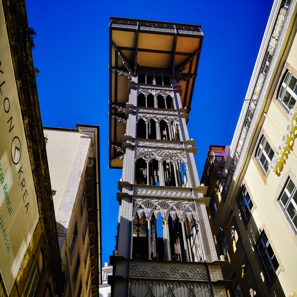 Moving on from the castle, we caught the bus down in to the flat central area (how the bus got down there I’m not sure). It was a bit early for lunch so we visited the Santa Justa lift. The purpose of the lift, located near the posh-but-not-poshest shopping arears is to transport people up some 45 meters instead of having to walk up one of the steeper hills. Perhaps overkill compared to an escalator, but the 19th century industrial age piece is rather unique.
