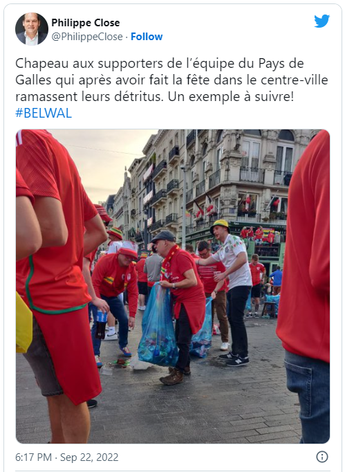 Hydrated, I moved on to the designated Welsh Fans area a few minutes away. It was a glorious few hours before kick off with sunshine, banger after banger bellowing out from the speakers and plenty of beers purchased from the supermarket down the road, to avoid being taken advantage of by the Irish bar charging £7 a time. I remember there was an article in the Belgian press bigging us up as we all cleaned up litter after ourselves before the game, but it is worth mentioning the sizeable police presence should be commended for their hands off approach, letting us be a little silly, but not out of hand, leading to absolutely ZERO trouble… again.