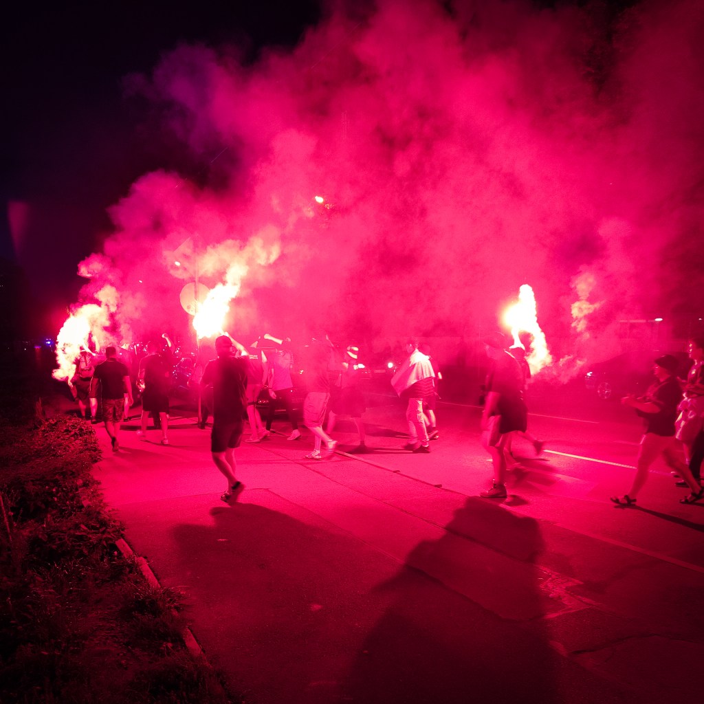 The ride and rest done wonders as we made a short 10 minute from Pete’s hotel to the ground, bumping in to the harmless Latvian Ultras and their pyro.