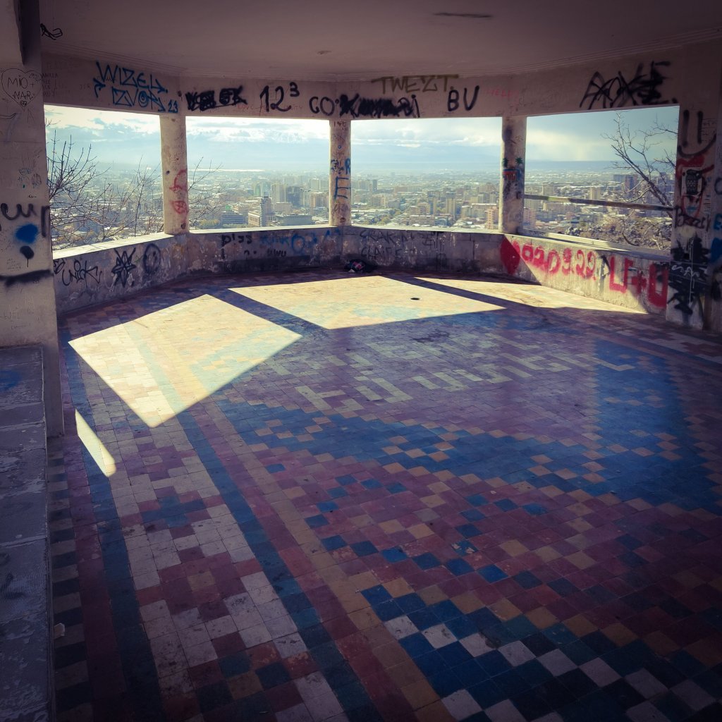 Thankfully we decided to crack on with the latter. The park, whilst not of particular outstanding beauty, was a nice change from the noisy traffic. The first sight of interest was a disused Soviet era restaurant. I flagged this up when doing my research before the trip. Given the views from what I assumed used to be a dining room, I found it strange that no one had taken it on and it’s not in use today.