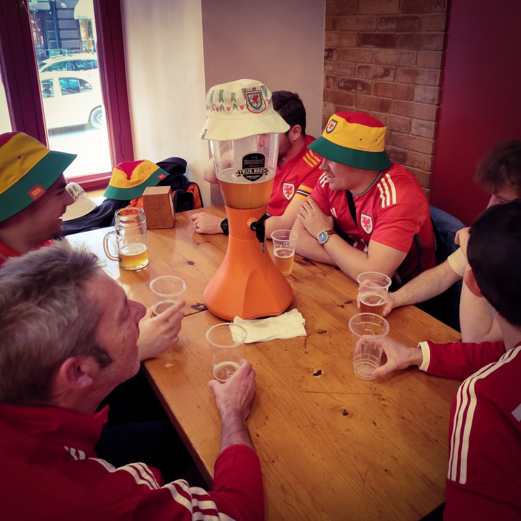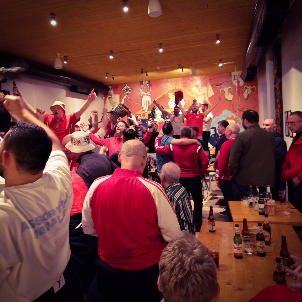 Nevertheless, it was an opportunity to have a beer and cheeky cocktail whilst we arranged to meet up with my mate Donna. Going to the underground Beatles Pub, advertised as the Wales gathering place, was not an option as it was absolutely rammed to we went to a nice bar close by among the locals. We met up with Donna and started what turned out to be one hell of a drinking session. As one group of locals left they were replaced by Welsh fans and in no time at all did we had a sing along. As always, very well behaved, even the bar manager was too busy taking videos to quickly serve me.