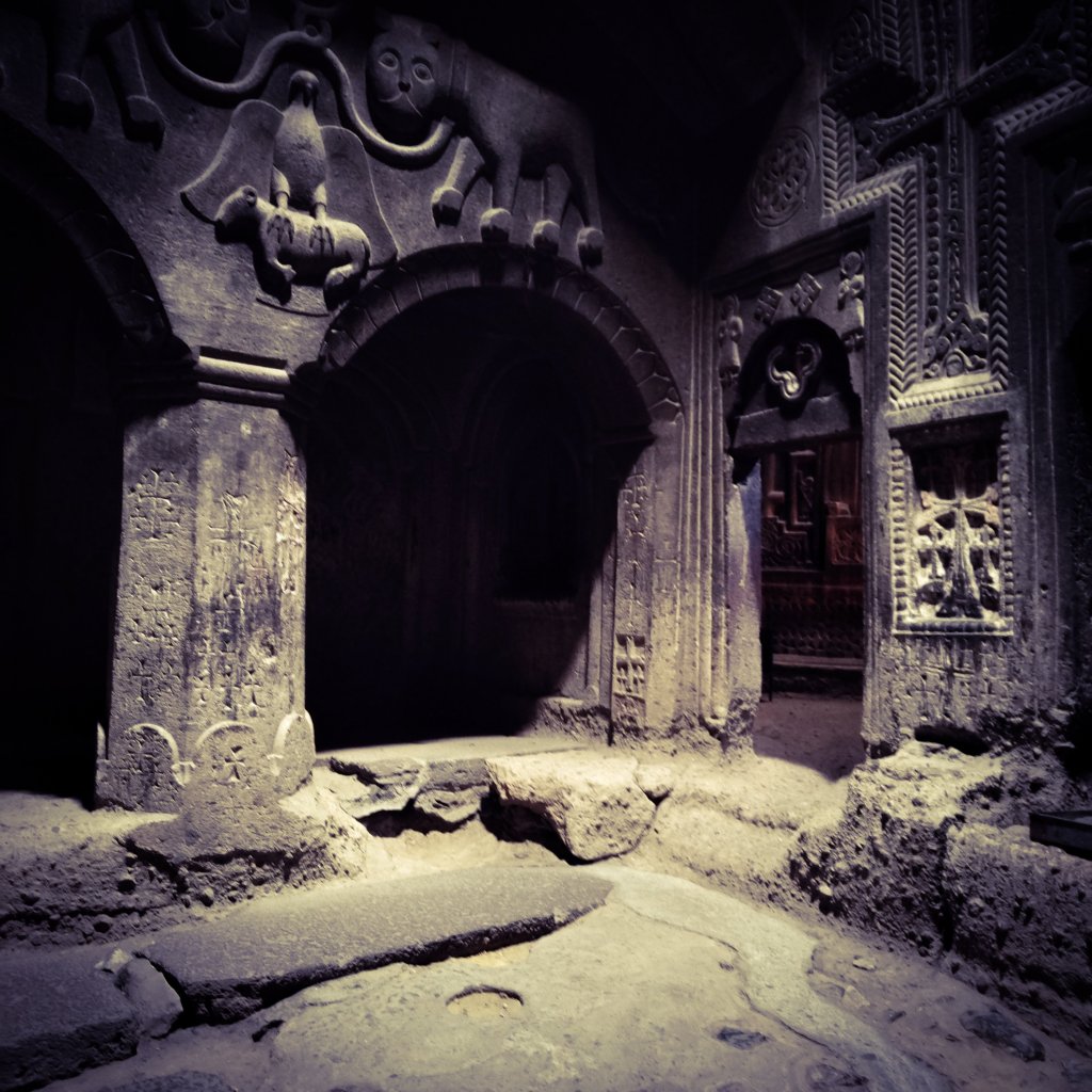 Third on the list was the 13th century Geghard monastery that did take my interest more than the previous stops. The area is built in to the cliffs and is still used for services today. I know that, as it was a Sunday morning and we walked right in to a service. Chris going to church on a Sunday? Bloody hell.