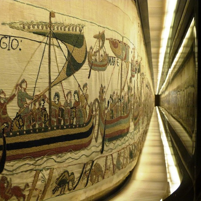 The Tapestry i.e. the bit of cloth you see, depicts 1066 and William the Conqueror… ummm… conquering England.