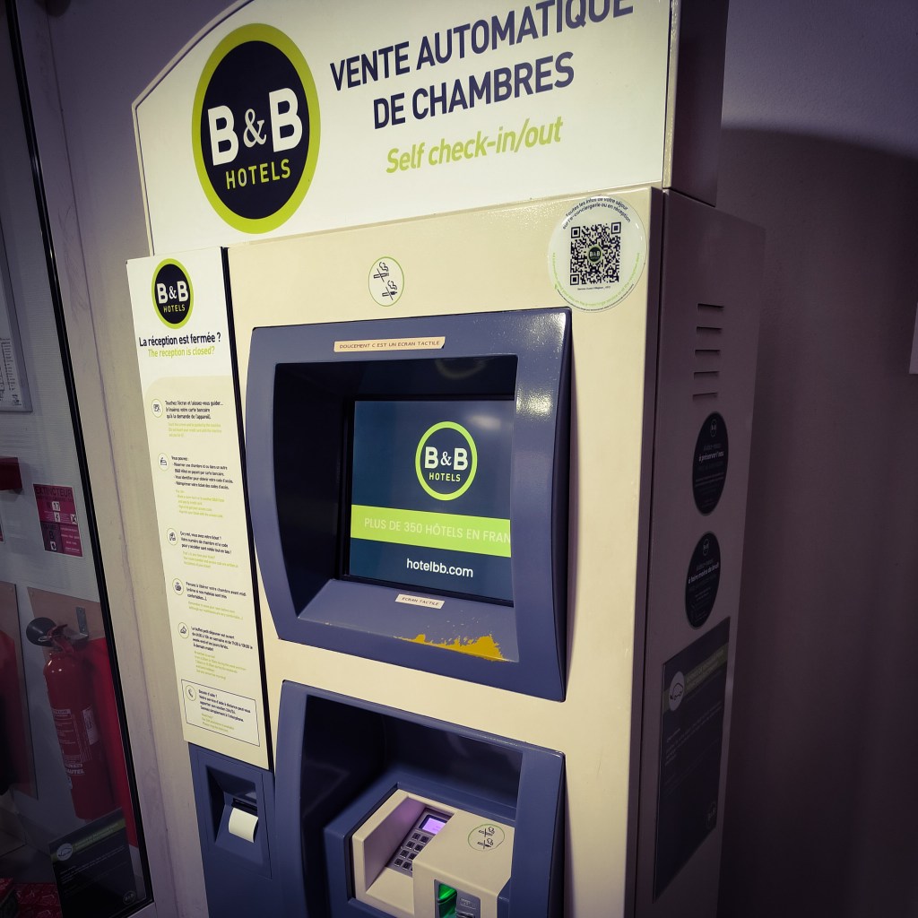 Image ^ The self-check-in machine at our hotel. Not a member of staff in sight