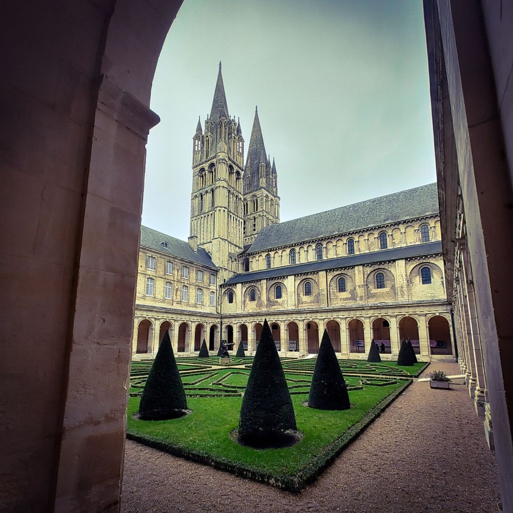 Image ^ A garden in the monastery with the Abbaye-aux-Hommes in the background.