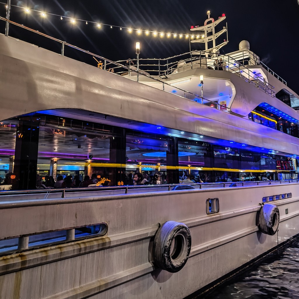 For a bargain price of £22 each we added ourselves to a daily boat tour. When booking one may raise an eyebrow over the departure location, it’s in a petrol station, but nevertheless the ship was there promising us a meal, entertainment and audio guide.