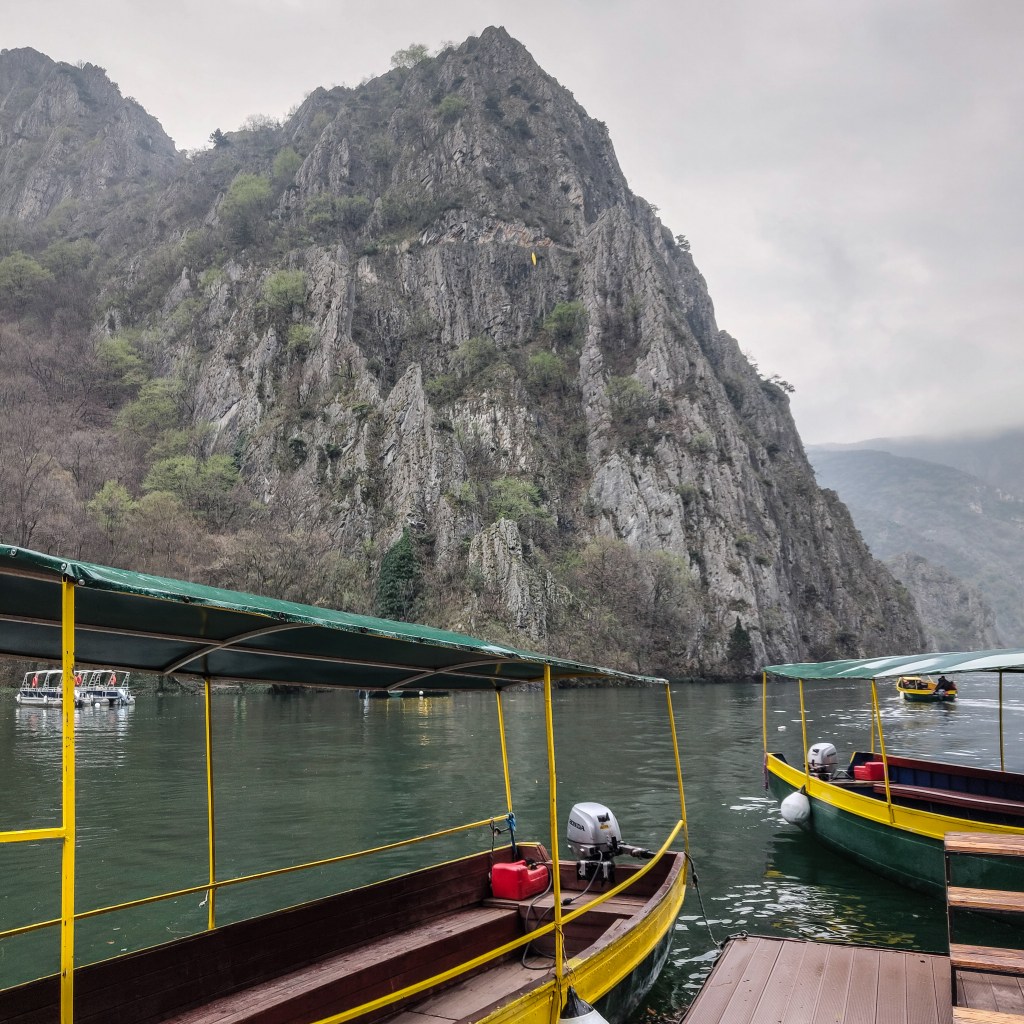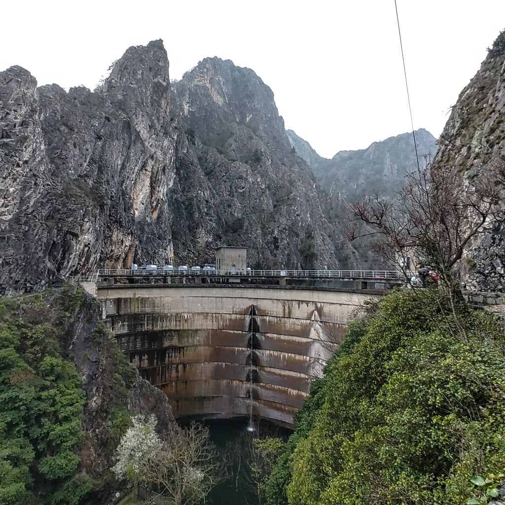 45 minutes drive from Vodno, our drop off location to access Lake Matka was a good mile away and whilst I didn’t necessarily need my walking aid I wasn’t gutted that I brought it with me! The route was flat albeit with an incline to rise to the top of the dam. I don’t see many dams and concluded that I find them rather impressive. Hoover Dam will be ticked off at some point I’m sure, fingers crossed.