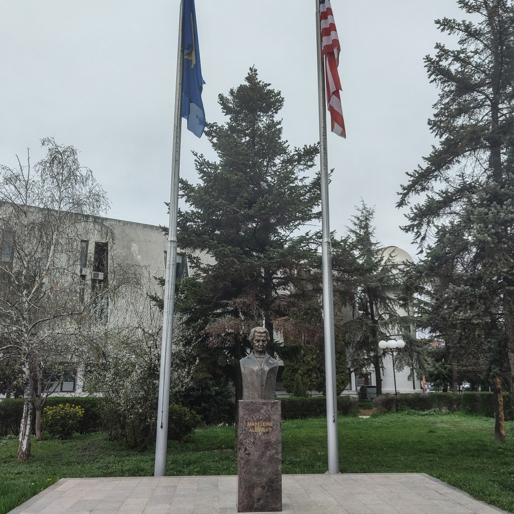 Just a few meters up the road from the Newborn monument was a statue of Madeleine Albright, Secretary of State for the second term of Clinton’s presidency 1997-2001. She advocated for NATO intervention to protect Kosovo Albanians from the violence perpetrated by Serbian forces under Slobodan Milošević. It’s safe to say without this intervention, the country may not exist today, with over 90% of the population ethnic Albanians.