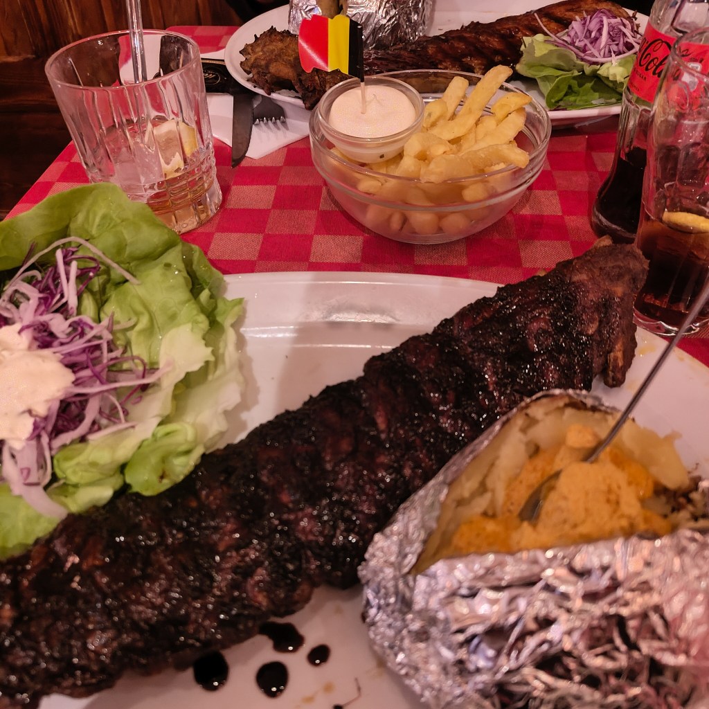 For dinner, we cashed in on a reservation I made five months prior in JANUARY following a video from Cheap Holiday Expert! Restaurant Mozart (link) is based a few minutes away from the central square and offers all you can eat ribs for €25. Right up our alley after a long days travel. The ribs come in a variety of flavours and come with fries and the most spectacular jacket potato I have ever tasted, thanks to whatever sauce it was on top.