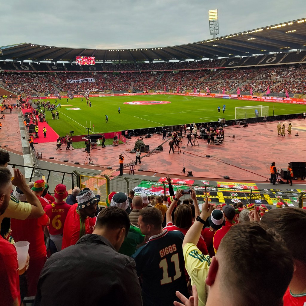 The second half, or at least 37 minutes of it, was the most intense and enjoyable away game I’ve had watching Wales, noting I’m still a relative newbie who missed some of the epic matches at Euro 2016. Sorba Thomas and Brennan Johnson scored for Wales to make it 3-3 by the 70th minute – you cannot imagine the scenes and pints being thrown when the equaliser went in (some bloke actually fell from the second tier but had only minor injuries) under Kevin de Bruyne, the poor mans Aaron Ramsey, took advantage of sloppy defending on 88 minutes to give Belgium victory.
