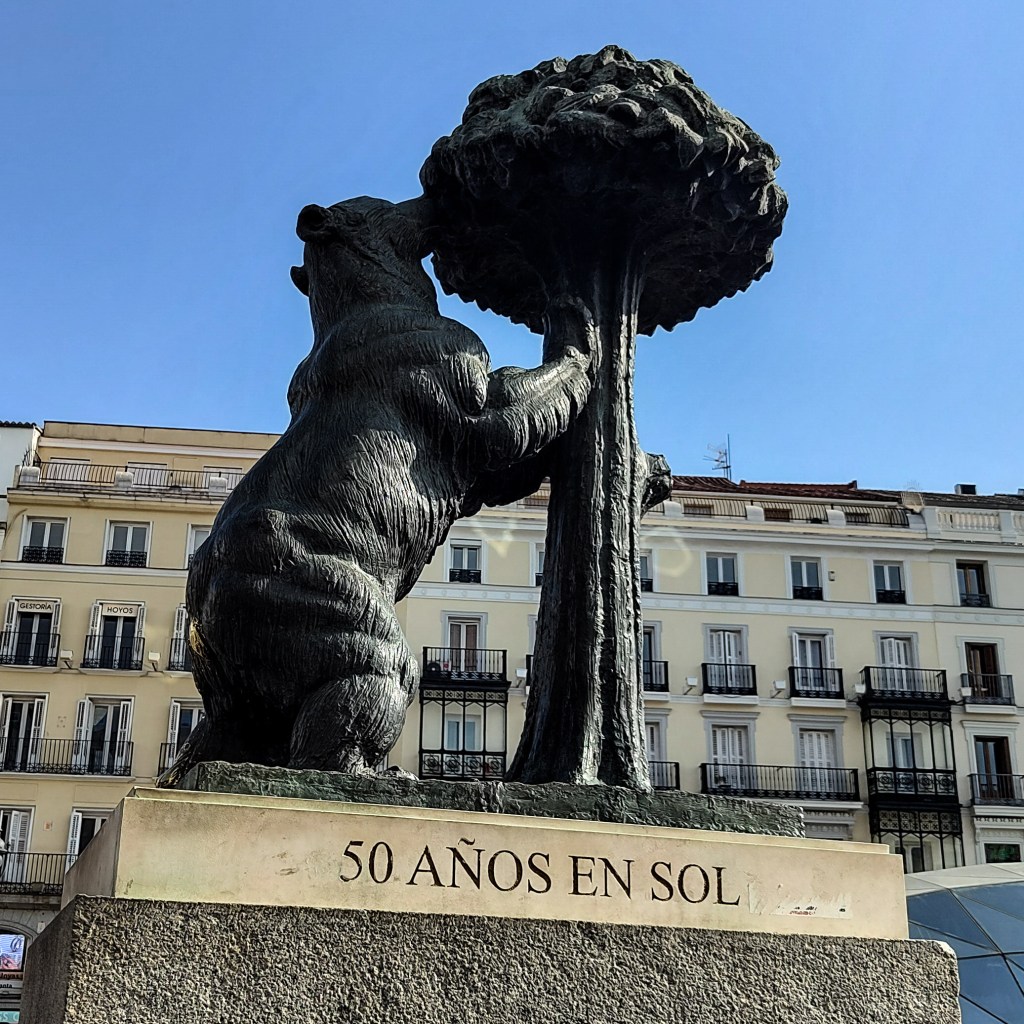 After a bus or two we then visited the Puerta del Sol public square for a photo of the “El Oso y el Madroño”, a bronze statue of a bear and a strawberry tree. Somewhat underwhelming given the tourist interest but a very recognisable image many relate with Madrid.