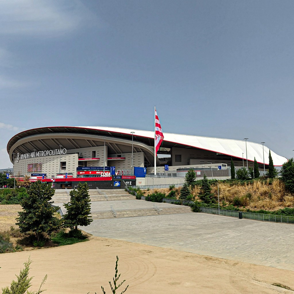 To get here we had to walk for about 20 minutes from the nearest metro and up a few flights of steps. Paired with the peak of heat being close to 40 degrees I did struggle somewhat around here. We did originally plan to play it safe and go back to the hotel, but once we caught a long bus with air condition, we decided to metro and bus jump to the far east of the city and visit another football ground, this time belonging to Atletico Madrid.