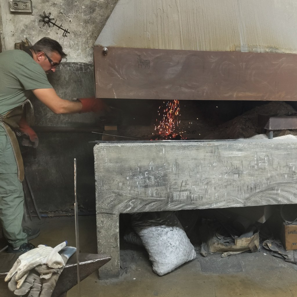 Before we would start our walking tour, we had a pit stop at a nearby Damasquinado factory (the art of inlaying different metals into one another—typically, gold or silver into a darkly oxidized steel background—to produce intricate patterns).