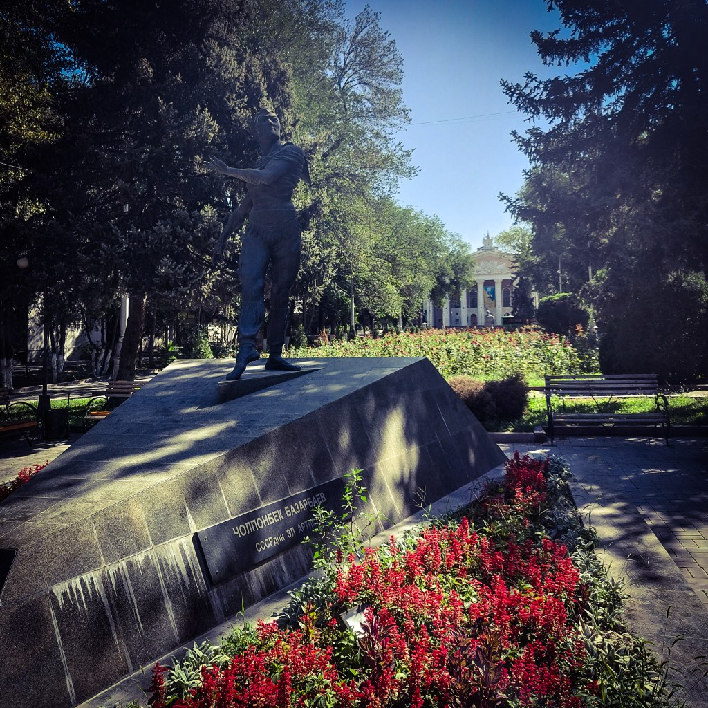 Image ^ The National Opera and Ballet Theatre. Probably not sponsored by Timothee Chalamet…Image ^ Statue of Cholponbek Bazarbayev, a Kyrgyz ballet dancer