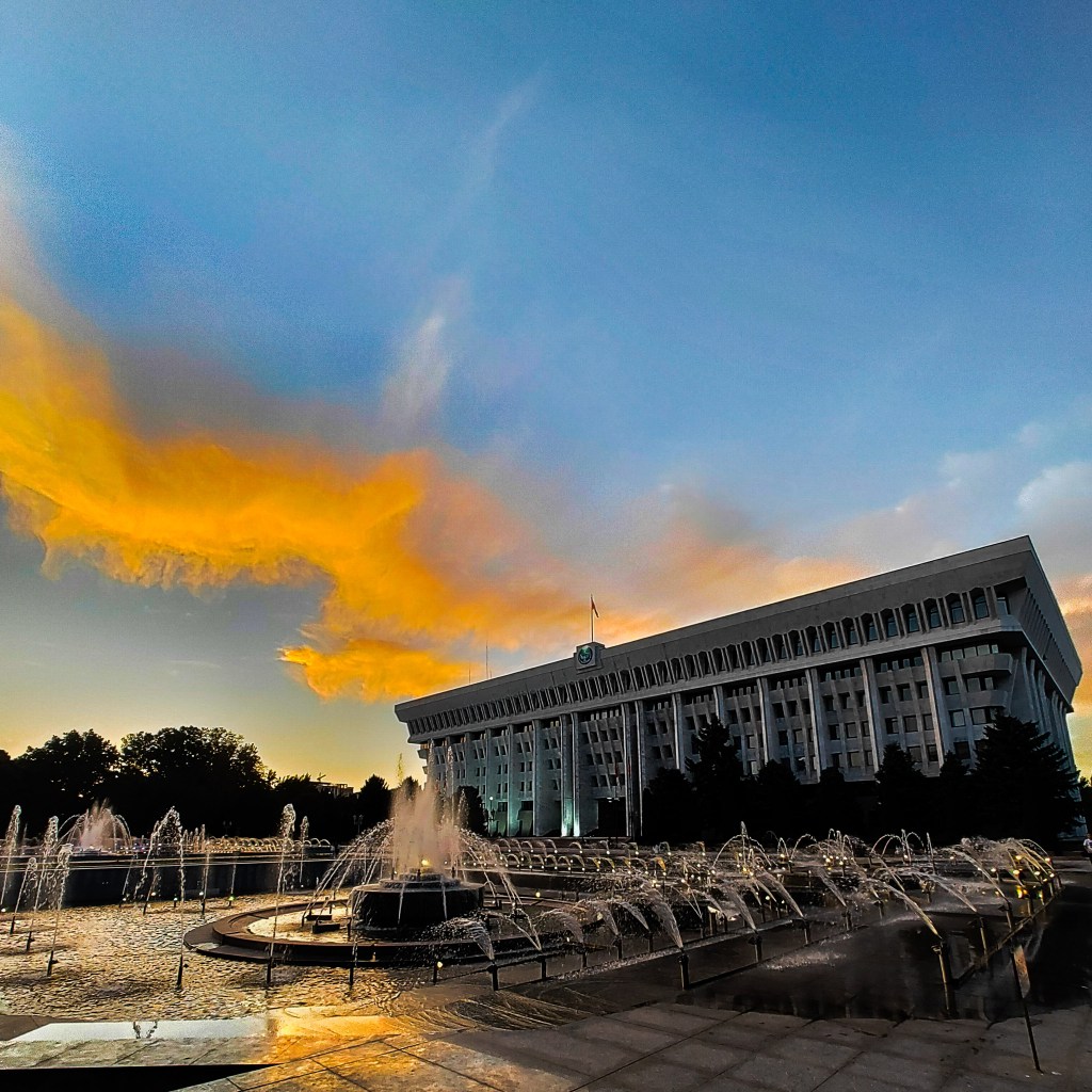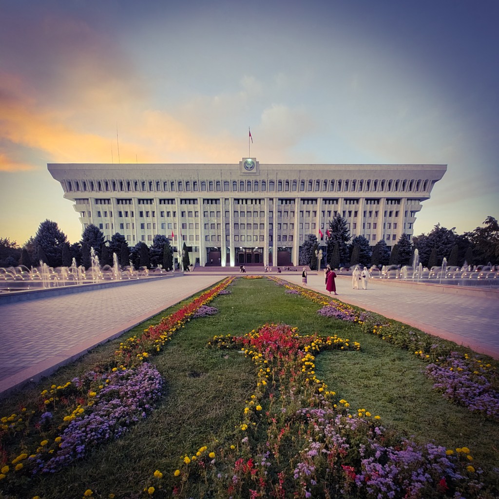 Feeling grateful that I can openly share a difference of opinion of the people in power back home, I walked away from the square to – ironically – the nearby Kyrgyz Parliament building. I can’t decide whether I love or loathe the soviet-era architecture but the fountains, gardens and sunset certainly helped!