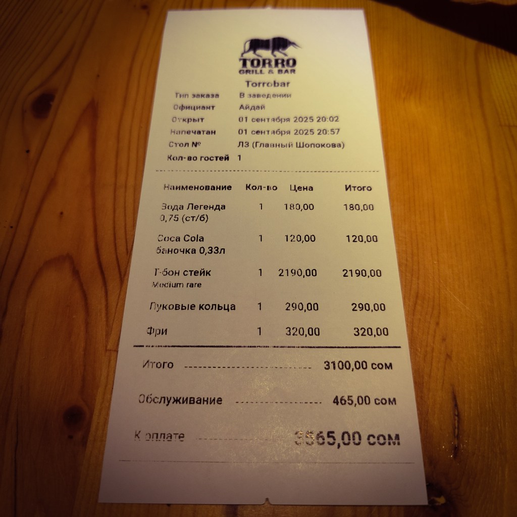 Having to check out early tomorrow and needing a few more things to see/do, I had a good few hours rest in my hotel room, probably a nap, until I headed nearby to a recommended steak restaurant called Torro Grill & Bar.