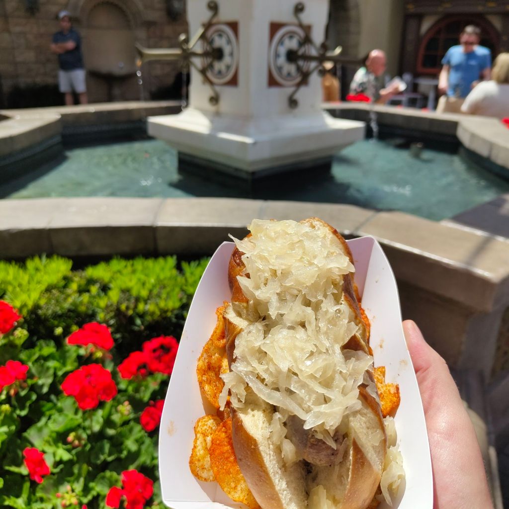 Pretzelbread Bratwurst with sauerkraut and paprika chips