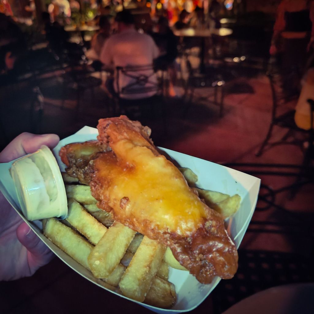 Thoughts: Was wary of this but the fish was fried really well. Not a huge lover of batter in general but could pick the fish off. Chips alright, didn’t expect ‘proper’ chips. Surprised to see no mushy peas in the vicinity, although nice to find some vinegar on offer somewhere. Cost was OK it’s not much cheaper at home! Apologies for the photo as it was now nighttime, the fish wasn’t green!