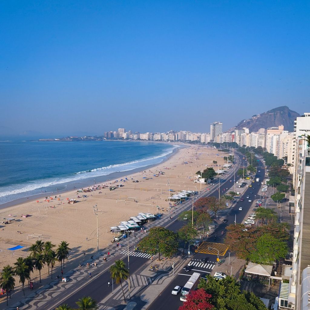 I must admit it’s a lot easier to wake up in the morning when the Copacabana beach teased you a little last night in the dark, so even before breakfast I wanted to go to the rooftop pool (small and rather unnecessary?) for a beautiful view of the beach and ocean.