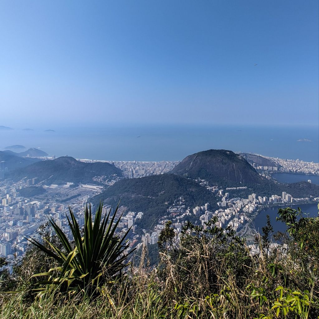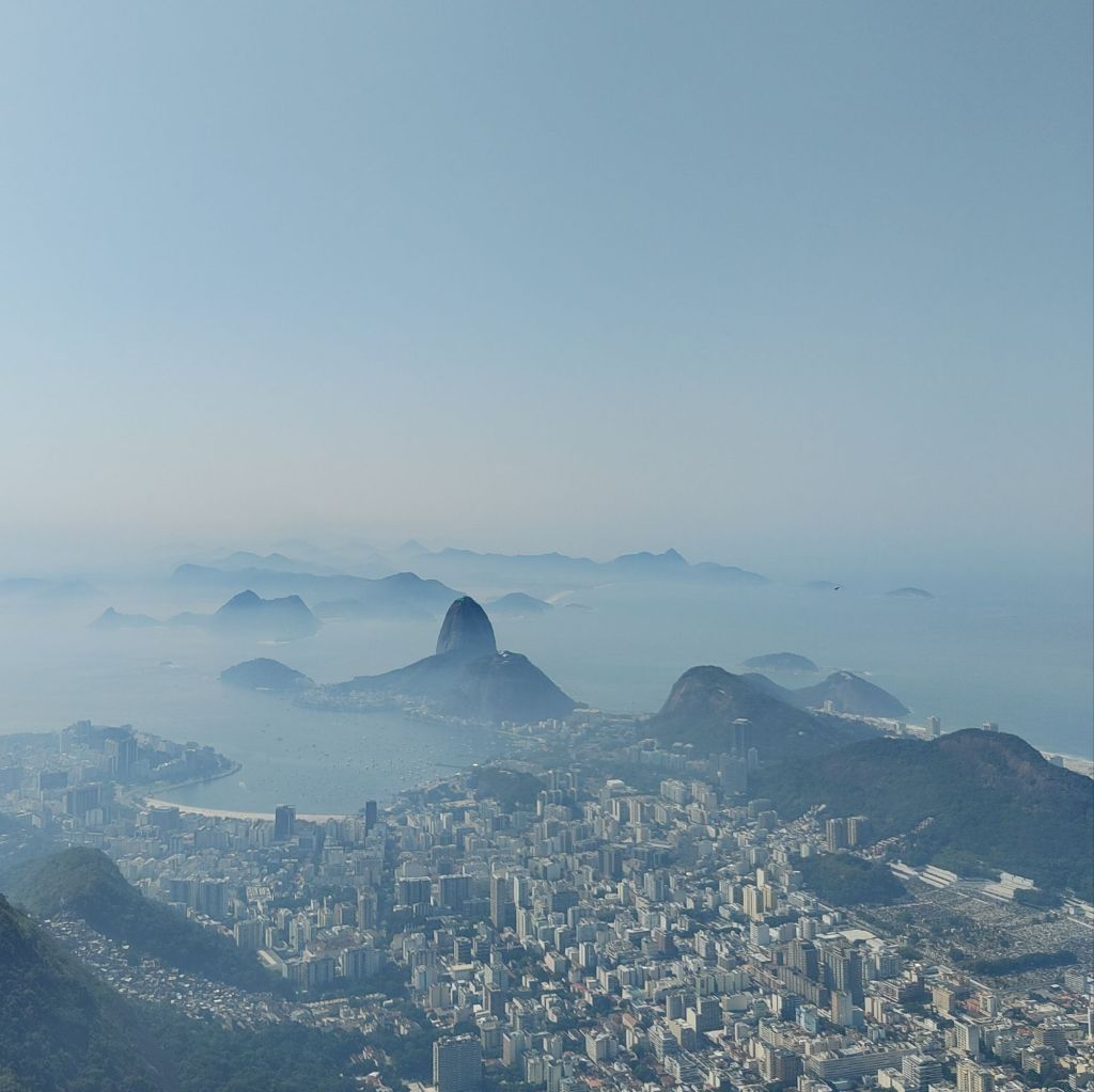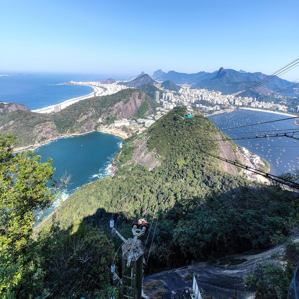 The picture taken at the summit shows the very wiggly coastline of the city! You have the Copacabana on the left, Botofogo beach (I think) on the right within the huge Guanabara Bay. My phone camera certainly isn’t good enough to include Christ the Redeemer here, but take my word with a decent eyesight you can clearly make it out on the highest thin peak to the top-right of the photo.