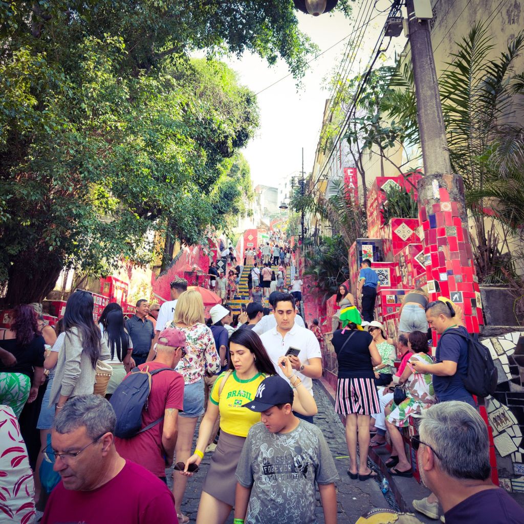 Our fourth and final stop (it really wasn’t the best tour) was the Selaron staircase. Now forgive me for not even trying to attempt to get a decent photo without loads of poeple in. It was rather impossible. We only had around 15 mutes here but you could have spent hours looking at the finer details in forms of tiles donated from around the world. It was pleasant to pick ones out from places we have been to (Malta and a Lisbon tram in the photo below) but I never expected to see one from Wales…