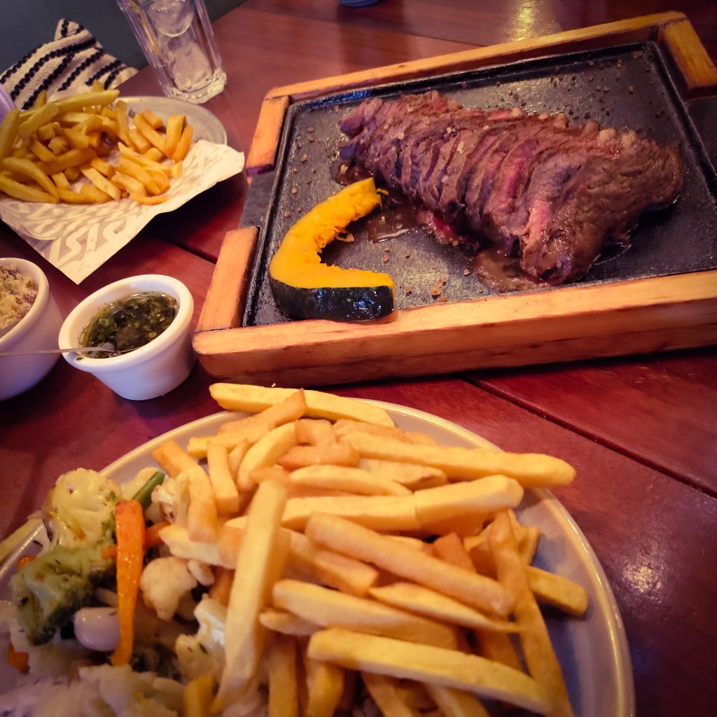 That evening we couldn’t really have anything else than a tray full of steak costing £25 for both of us.