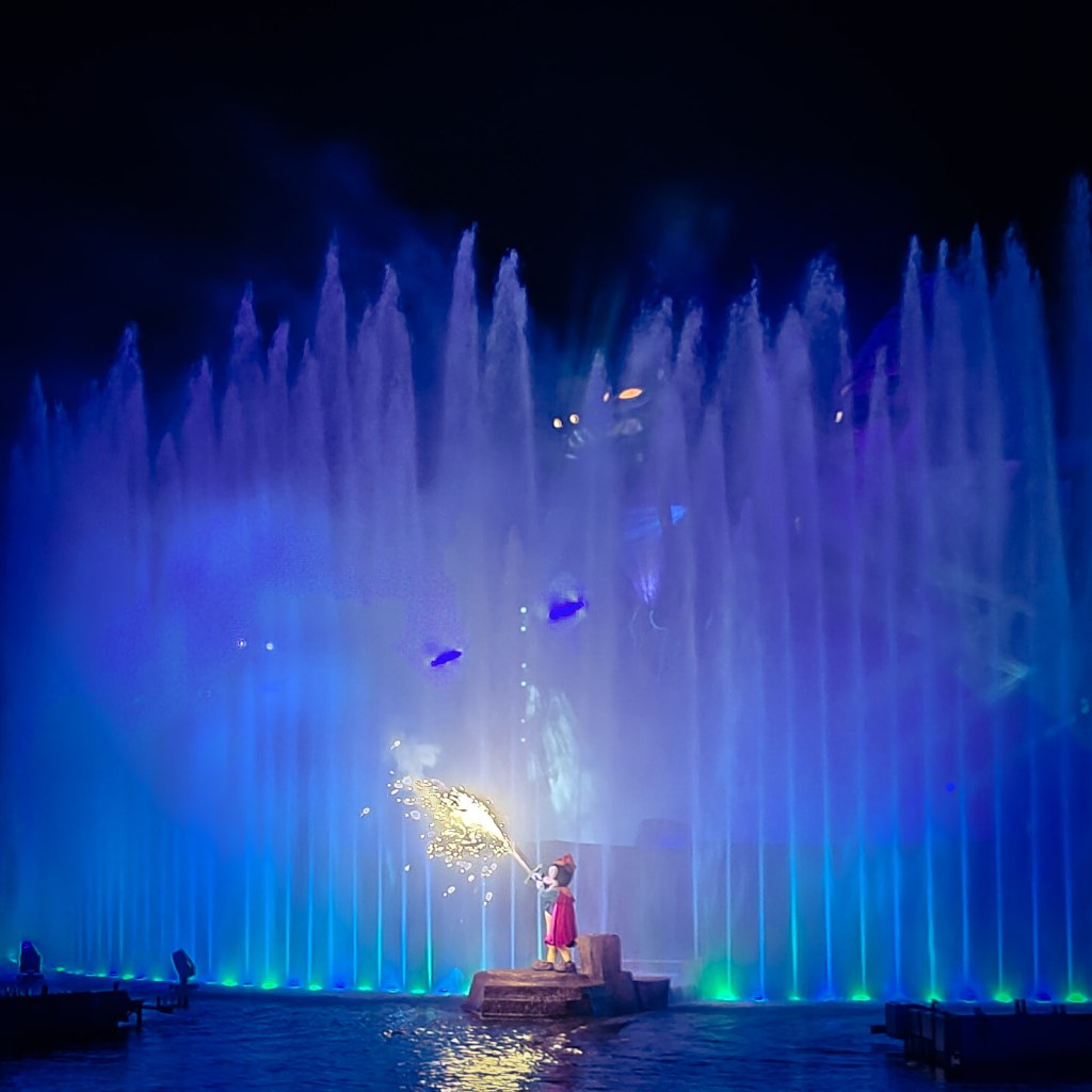 The only show that we enjoyed twice. It had a storyline, a host of Disney characters and Mickey Mouse running the show. Stories projected onto water screens and subtle use of pyro made this stand out compared to the others. Also note that this was shown at 8:30pm and 10pm, so you can fit it in right at the end of the day. We seen one of each show time, and noticed the 10pm showing had a bit more added on with a bit of fire involved, without giving too much away.